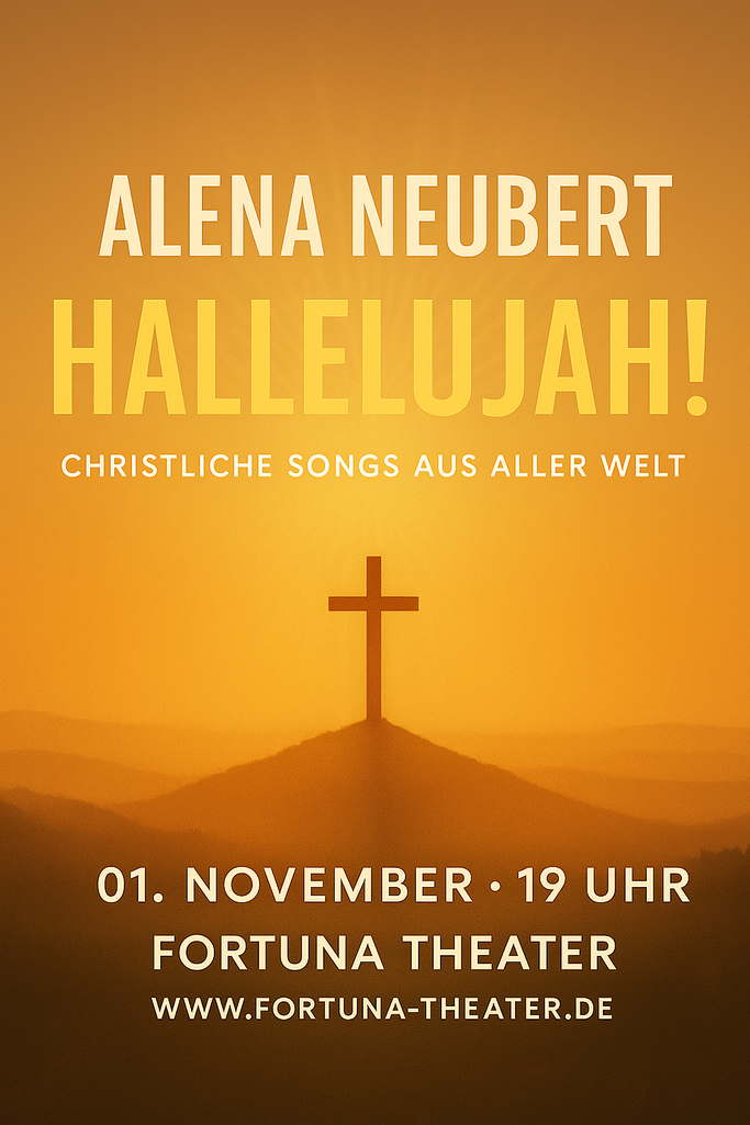 (Reichelsheim-Heuchelheim/red) – „Hallelujah!“ heißt das neue Konzertprogramm von Sängerin Alena Neubert, das am 1. und 22. November um 19 Uhr im Fortuna Theater Reichelsheim Premiere feiert. Nach ausverkauften Abenden mit Programmen wie Herzenslieder, Hollywood Songs oder Musicals & More erfüllt sich die 29-Jährige damit einen Herzenswunsch: ein christliches Worship-Konzert, das Glaube, Musik und Emotion miteinander vereint.