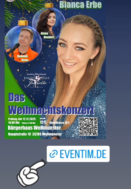 Ein großartig gesungener Song von Alena Neubert in einem phantastischen Konzert in Stockheim in der Kulturhalle. - Ich freue mich auf das Halleluja-Konzert im Fortuna Theater in Reichelsheim-Heuchelheim. - DANKE, Alena! - Gert Holle,, Herausgeber und leitender Redakteur von WIR IM NETZ - Kultur und Glaube Aktuell.